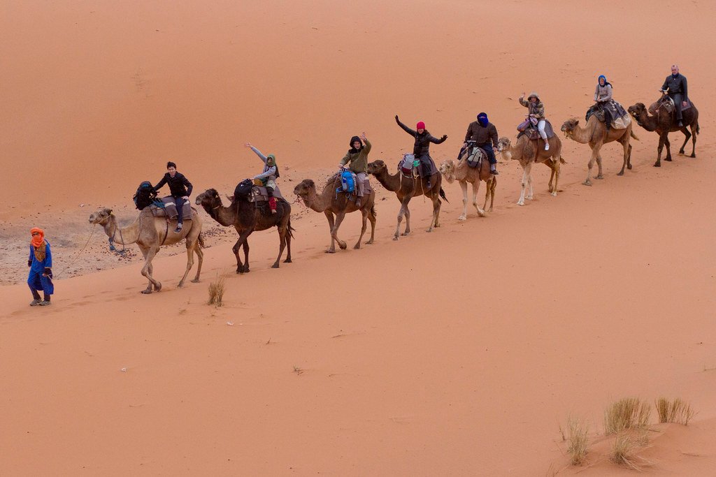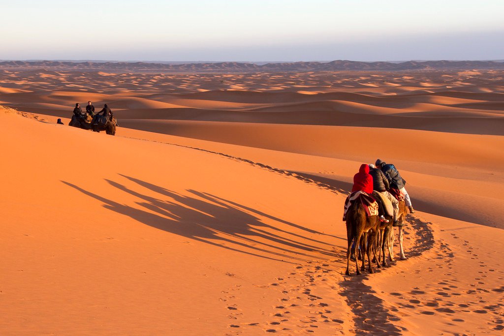 Por la tarde, el paisaje se transforma: montañas rojizas, valles profundos y un sinfín de palmeras anuncian la entrada al Valle del Ziz, uno de los oasis más extensos del país. A través de este valle llegarás a Erfoud, conocida por sus fósiles y su ambiente desértico, antes de alcanzar Merzouga, el portal del Sahara.