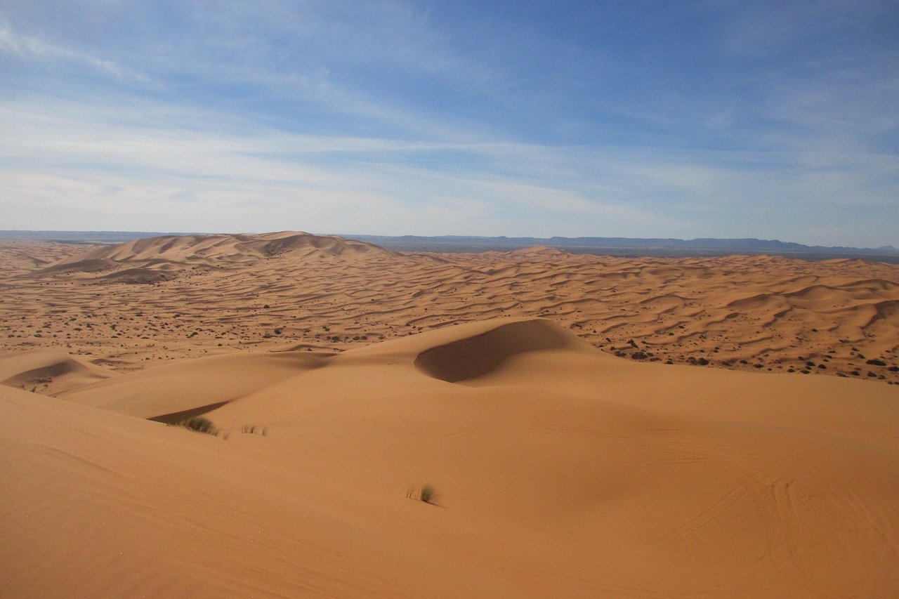 Al llegar a Merzouga, sentirás cómo el paisaje cambia por completo: las montañas y los valles dejan paso al mar de dunas del Erg Chebbi, un escenario de ensueño en pleno Sahara. Allí te estarán esperando los camellos para iniciar una caravana tradicional bereber a través de las dunas al atardecer. Mientras el sol desaparece en el horizonte y las arenas se tiñen de tonos dorados y rojizos, disfrutarás de un silencio profundo y mágico. Al caer la noche, llegarás a tu campamento en el desierto, donde te recibirán con té a la menta y una deliciosa cena marroquí bajo un cielo estrellado incomparable. La velada continuará con música de tambores alrededor del fuego, compartiendo momentos únicos con los nómadas del desierto.